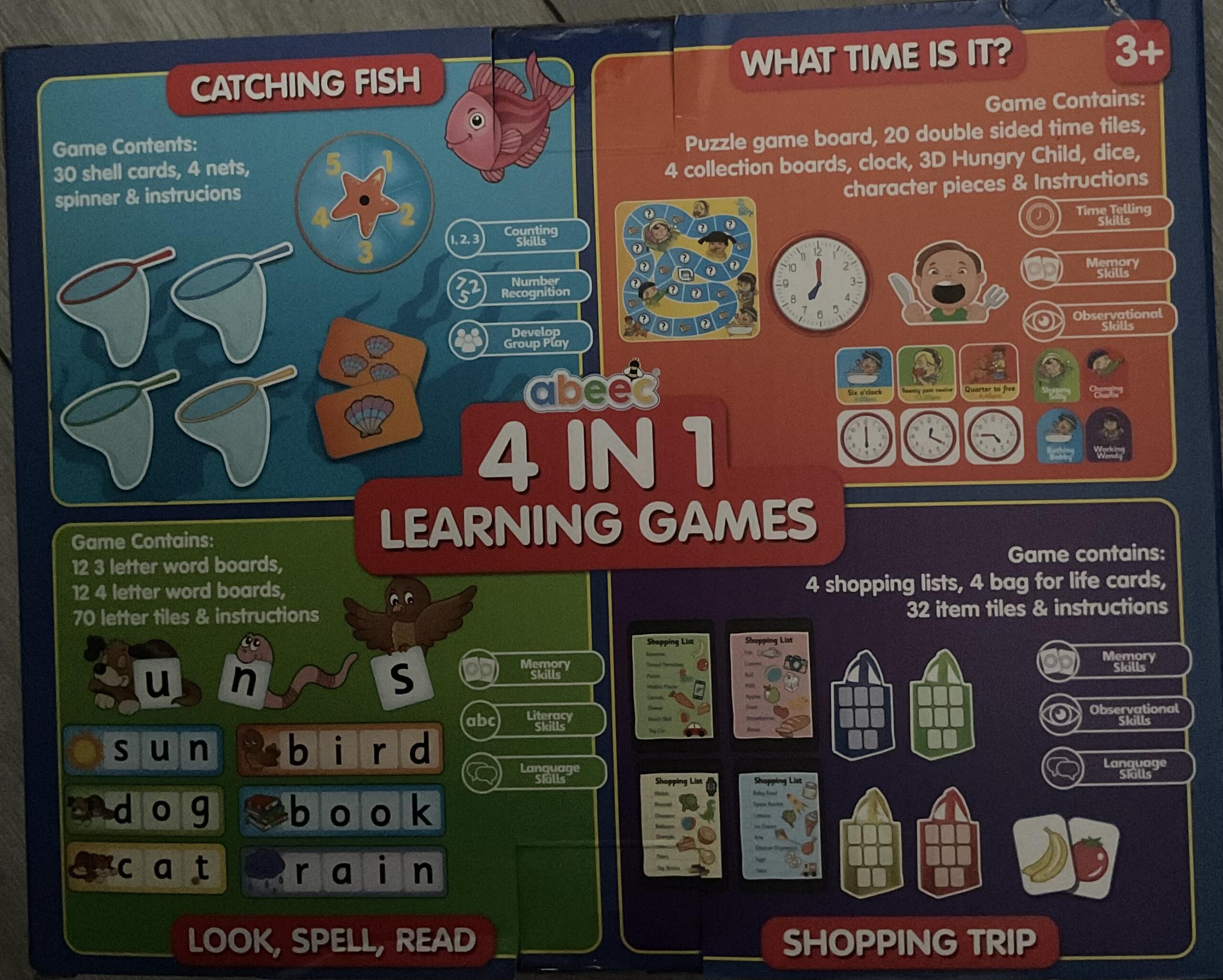 HomeArts and Crafts4 in 1 learning games 4 in 1 learning games£8.50 4 in 1 learning games quantity Buy now Category: Arts and Crafts Brand: Arts and craftsProduct ID: 21403 Description Reviews (0) Description Age 3+ Catching fish, What time is it, Look, Spell, Read and Shopping Trip Reviews There are no reviews yet. Be the first to review “4 in 1 learning games” Cancel replyYour email address will not be published. Required fields are marked *Name * Email * Save my name, email, and website in this browser for the next time I comment. Your rating * Rate… Perfect Good Average Not that bad Very poor Your review * I agree that my submitted data is being collected and stored. Related products Rainbow Slime £6.00 Buy now Pouring Art Balloon Dog £10.00 Buy now Sand art creations £7.50 Buy now
